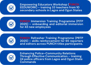 By the end of 2025, PUNCH Media Foundation had demonstrated not only scale but coherence, linking journalism to reform, capacity building to professional standards and partnerships to sustained impact. The year closed with PMF firmly positioned as the EPICC, disciplined, credible and high-impact institution, ready to expand its work, influence in 2026 and continue shaping accountability, inclusion and civic engagement whilst driving sustainable change across Nigeria.